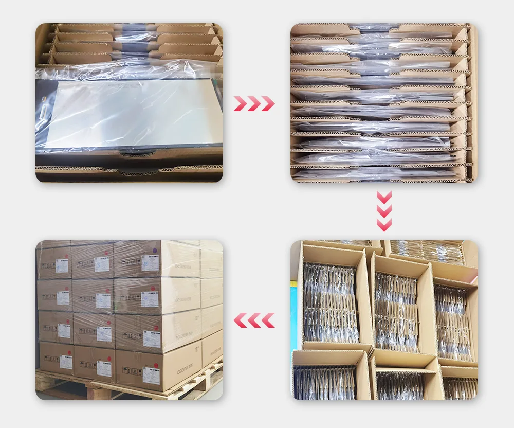 A embalagem da Tianfu utiliza uma solução protetora de exibição TFT LCD totalmente personalizada. As bandejas incorporadas são feitas sob medida para as dimensões precisas do módulo LCD (comprimento, largura, espessura e curvatura da borda). Feito de ABS de alta tensão ou de plástico de engenharia PP, as bandejas são amortecidas com uma camada interna de espuma EPE para garantir um ajuste zero, ajuste seguro entre o módulo e a bandeja. A caixa externa do módulo de tela TFT LCD é feita sob medida com cinco camadas de papelão corrugado reforçado para combinar com as dimensões da bandeja. Divisores de espuma personalizados e almofadas de ar são adicionados ao interior, criando um sistema de proteção de quatro níveis: ininterrendo da transferência de módulos.